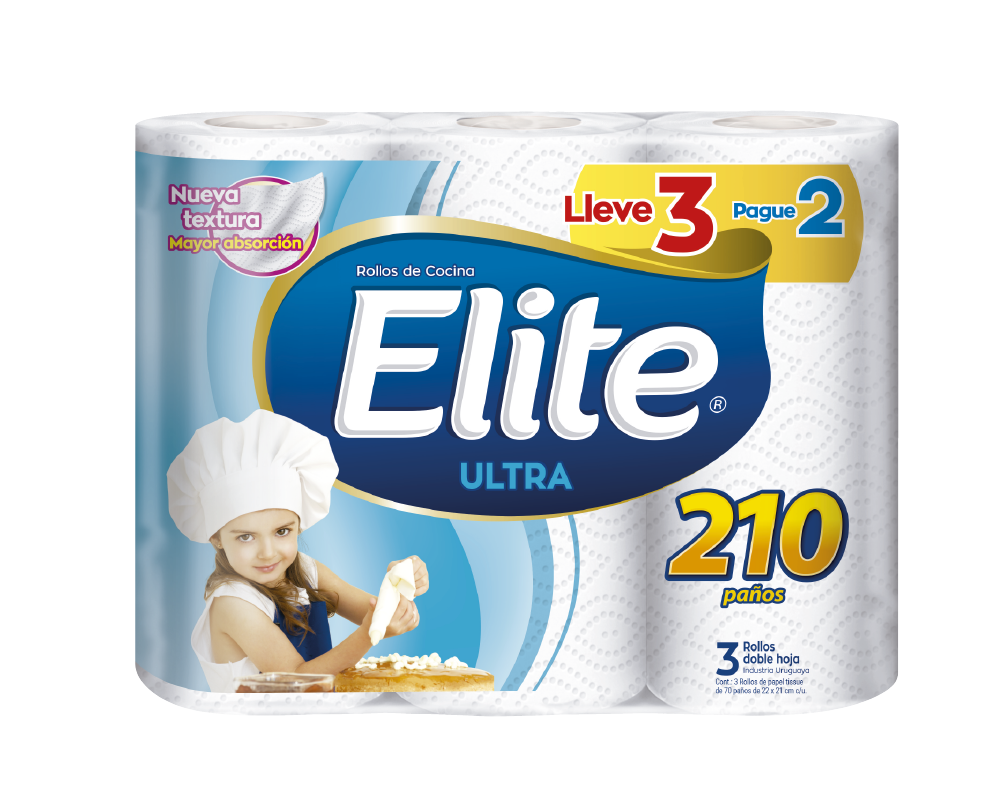 Rollo de cocina doble hoja Elite Fusion con una textura renovada, nuevo diseño de flor tulipán. Combinan la absorción, firmeza y diseño ofeciéndote la mejor calidad.