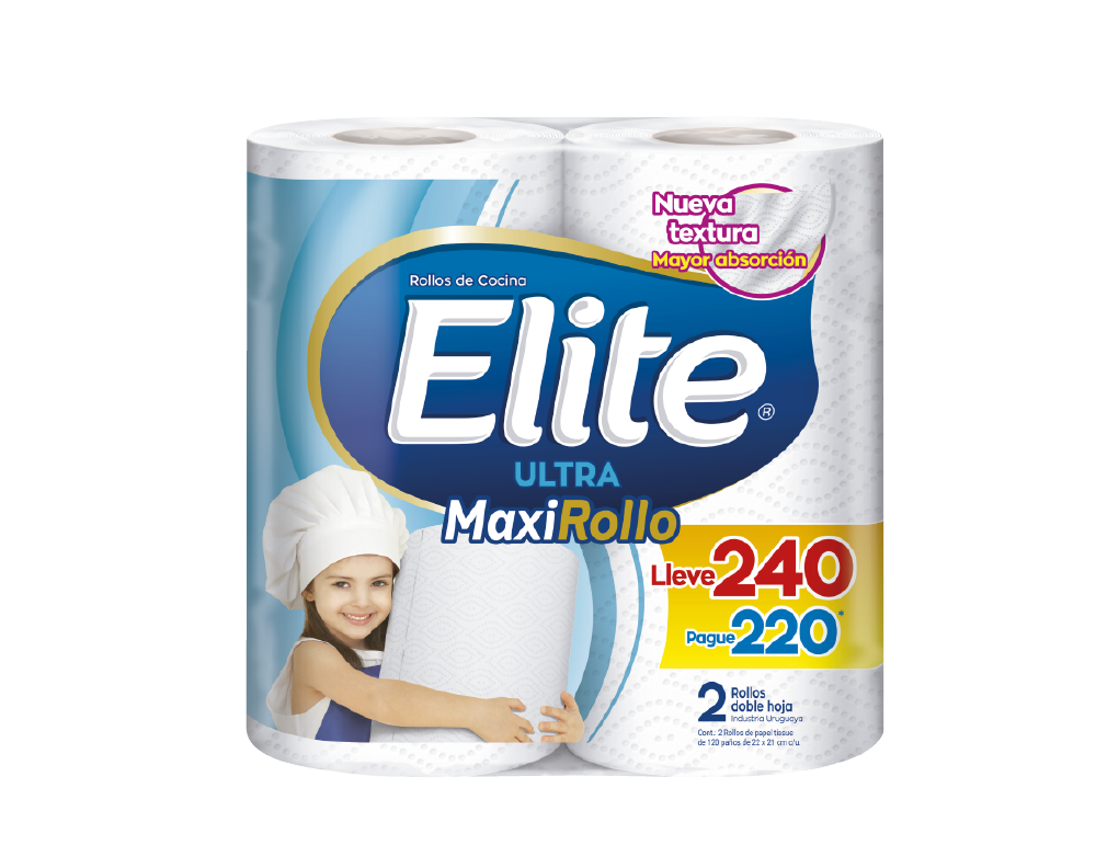 Rollo de cocina doble hoja Elite Fusion con una textura renovada, nuevo diseño de flor tulipán. Combinan la absorción, firmeza y diseño ofeciéndote la mejor calidad.